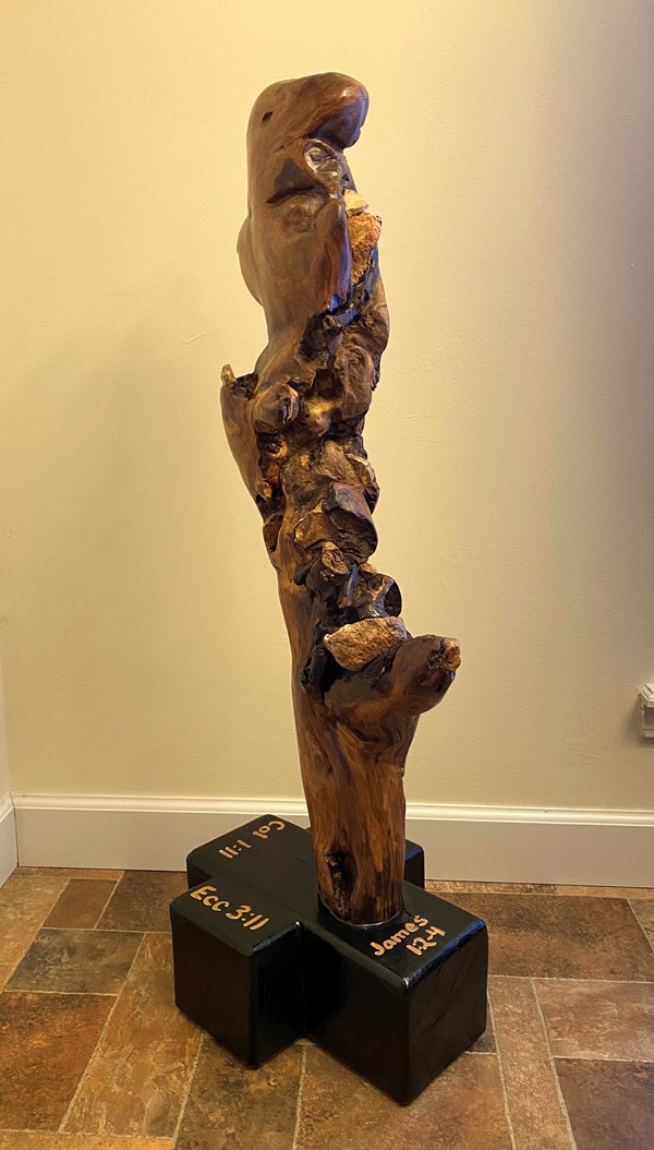 Rocky Root reflects some of the precepts of Acts – particularly regarding the travails of Paul – and embodies the verses written on the base. Ecclesiastes says God makes everything beautiful in its time. James declares that perseverance produces maturity and completeness. In Romans, Paul writes about persistence in doing good. Paul exhorts the Colossians to have endurance and patience.