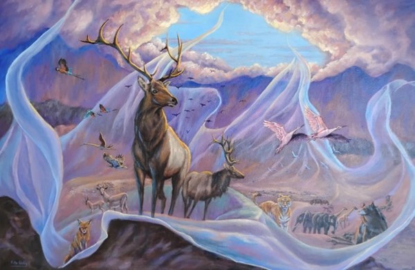 Acts 10 tells the story of the door to the church opening to the Gentiles-- a radical idea (to the early Jewish believers) that required a radical revelation from God in His dealings with Peter. What struck me as I was reading this chapter were the particulars of the vision: A great sheet is let down from heaven, holding all manner of animals. It couldn’t have been a simple bed sheet. It would have to have been the size of an entire vista to hold all the creatures described. That is what I endeavored to paint. I hope you enjoy.