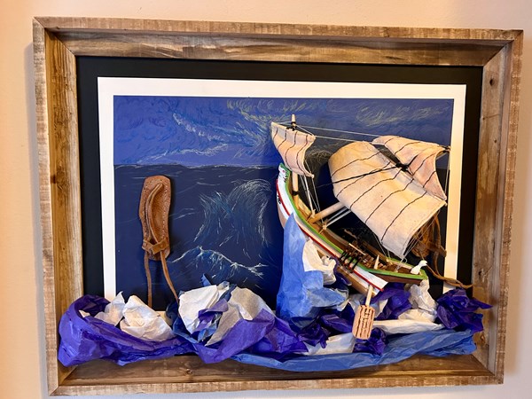 This artwork depicts a first century merchant ship like Paul could have booked passage. Steering was done by two big oars on the stern. If you look at this picture, one oar is out of the water - so they are dealing with the storm by pure faith.